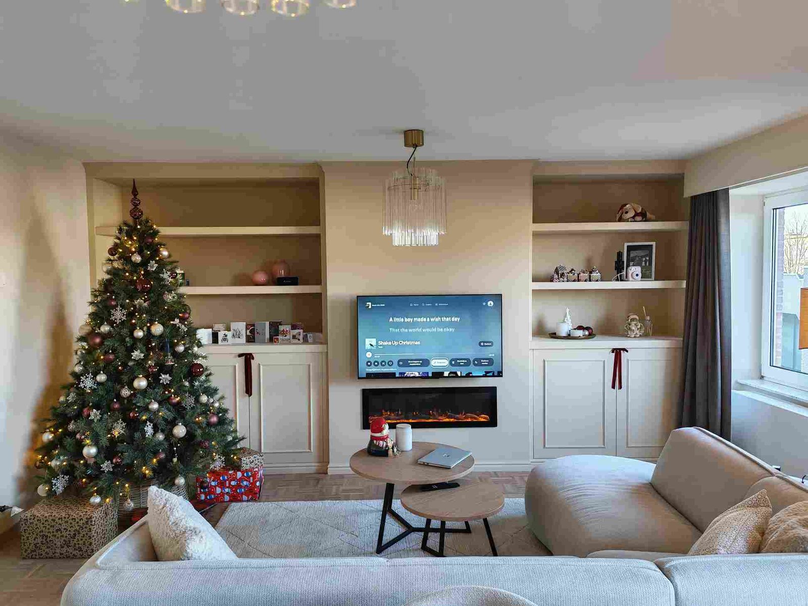 Esthetische afwerking: Het geheel krijgt een harmonieuze uitstraling dankzij gekozen materialen, kleuren en afwerking, afgestemd op de stijl van de woonkamer. Strakke lijnen en hoogwaardige afwerking zorgen voor een moderne, maar warme look.